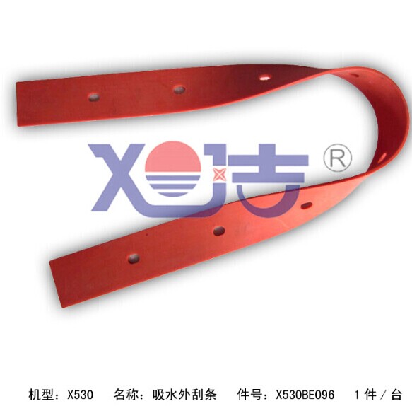 洗地機的吸水扒上的膠條就是我們所說的吸水膠條,它的作用主要是用來與地面接觸,產生一個密封的空間,把膠條從地面上刮出來的一些污水通過風機進行回收。吸水膠條是旭潔自動洗地機重要的配件。下圖為旭潔X530的內外刮條圖